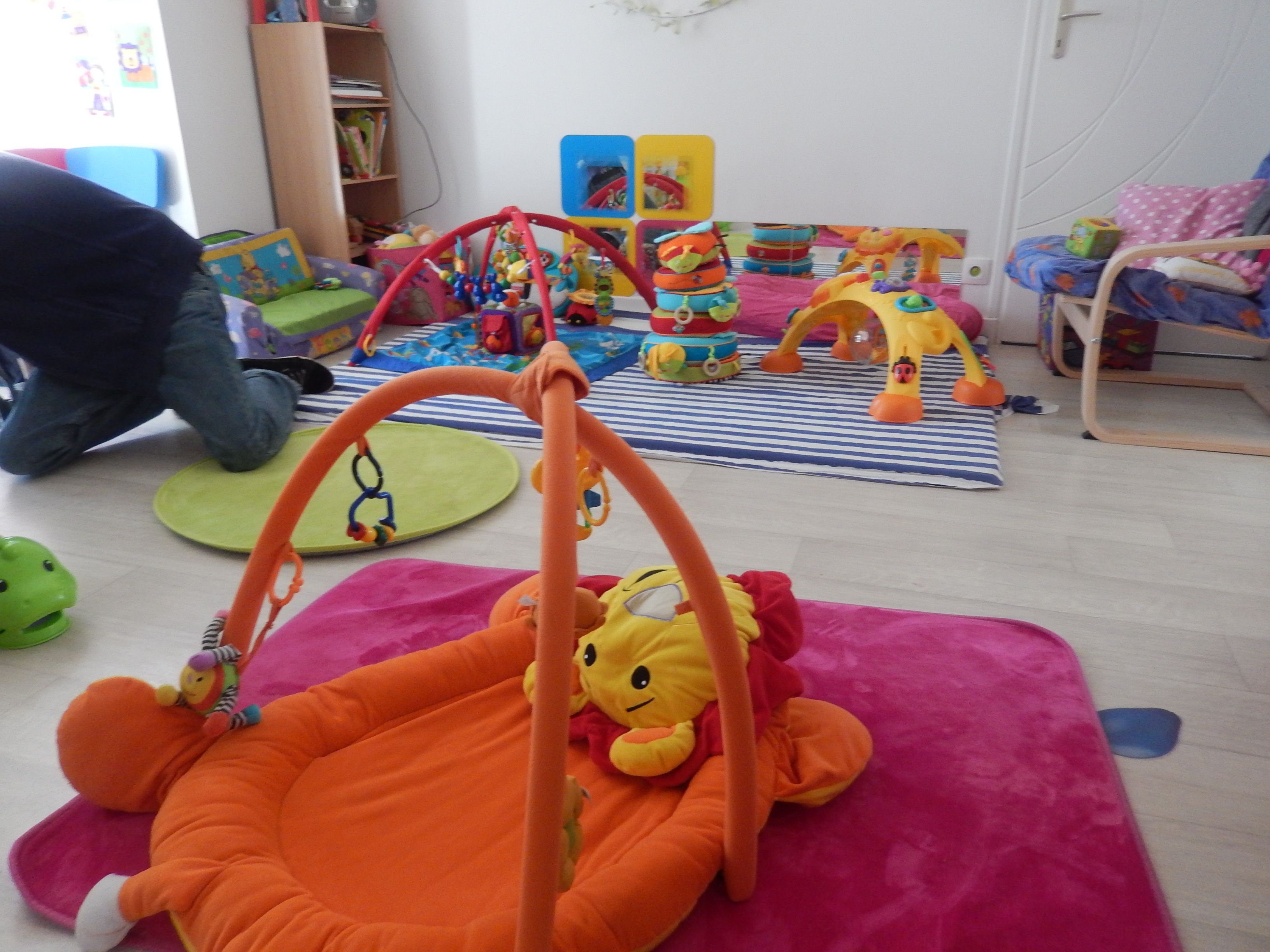 Au programme, jeux ludiques ( peintures, puzzle, gomettes, jeux de transvasement, créations et décorations de la salle de jeux car nous changeons tous les mois le décor......), eveil, câlins cocooning, balade, mais surtout quand le rythme des enfants le permettent ( sommeil, maladie..)nous nous rendons à la ludotheque, aux matinées d'éveil, médiathèque.....voir